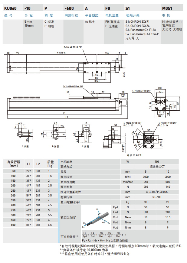 单轴机器人:KU系列 KU060型号规格