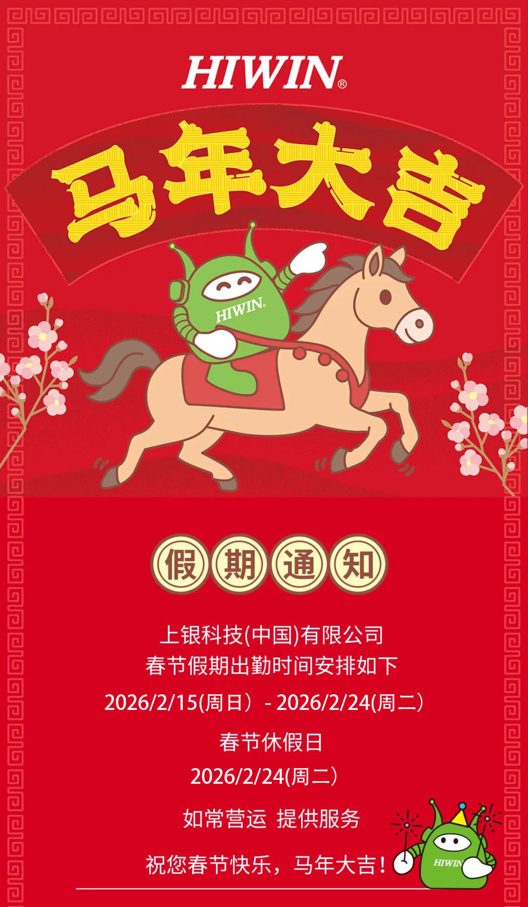 HIWIN祝您春节快乐