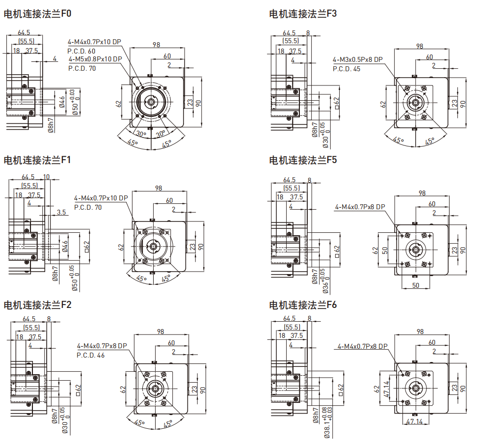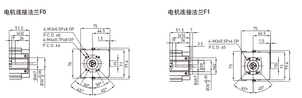 单轴机器人:电机法兰一览 KU080