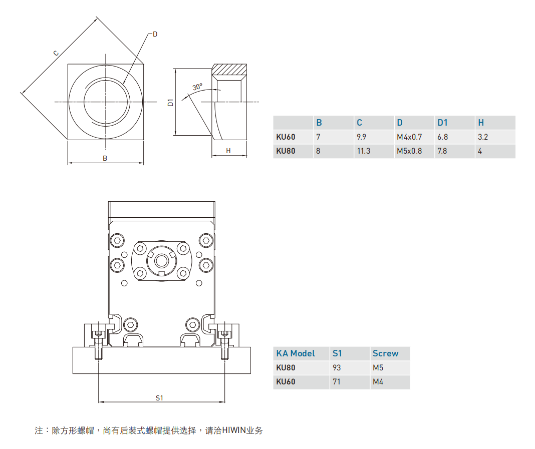 单轴机器人:KU配件 方形螺帽