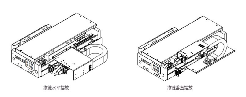 直线电机:标准化线性马达平台-量测标准、拖链:水平/垂直摆放方式