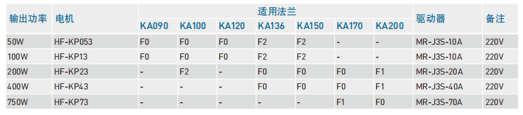 单轴机器人:常用电机参考(KA系列) 三菱 Mitsubishi 伺服电机