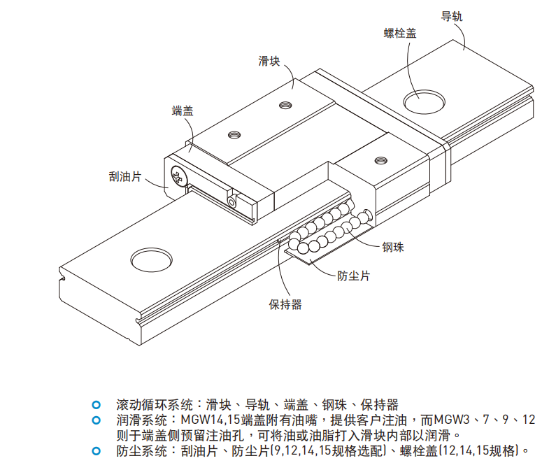 MG系列-微小型滚珠直线导轨-MGN系列微小型直线导轨之特点、MGN系列本体结构